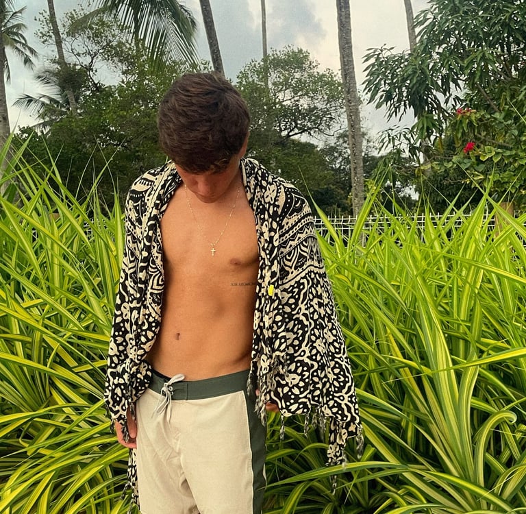 O nome veio da essência da Península de Maraú: ali, riqueza não é dinheiro, é saber viver, sentir o mar e colecionar histórias. Por isso, cada peça da Rich carrega propósito — das cores às estampas, tudo é pensado para transmitir significado e conexão verdadeira com quem veste.
